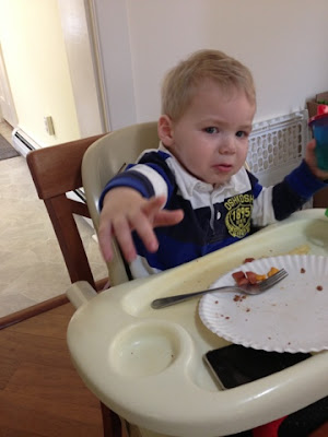 My hubby picked up an iPhone 5 for me! He brought it in while little man and I were having lunch. Little man pouted because he wasn't able to see it right away. His pouty faces are some of my favorite!